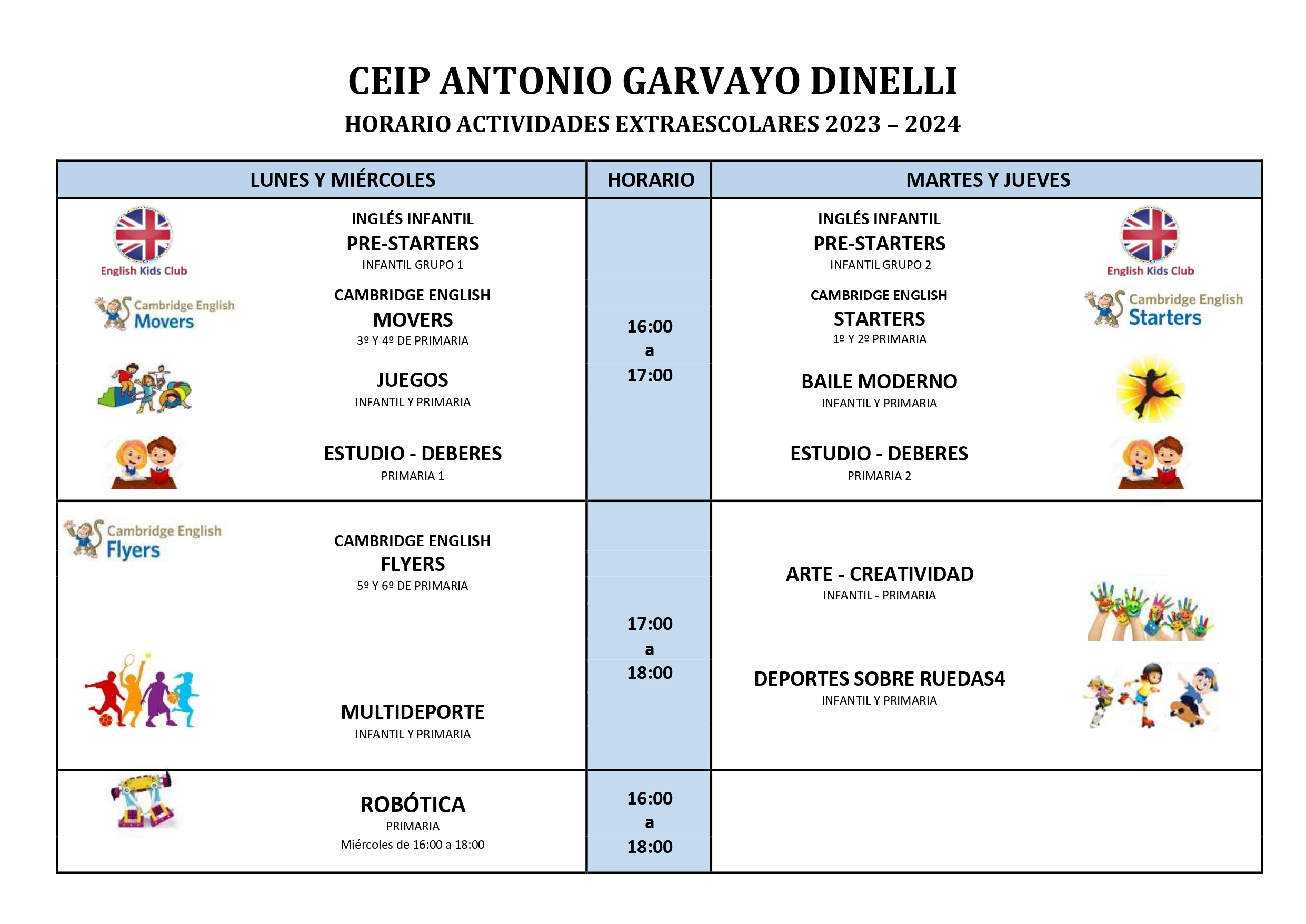 Nos dirigimos a ustedes para informarles de las novedades y cambios que se van a introducir en las ACTIVIDADES EXTRAESCOLARES del próximo curso.