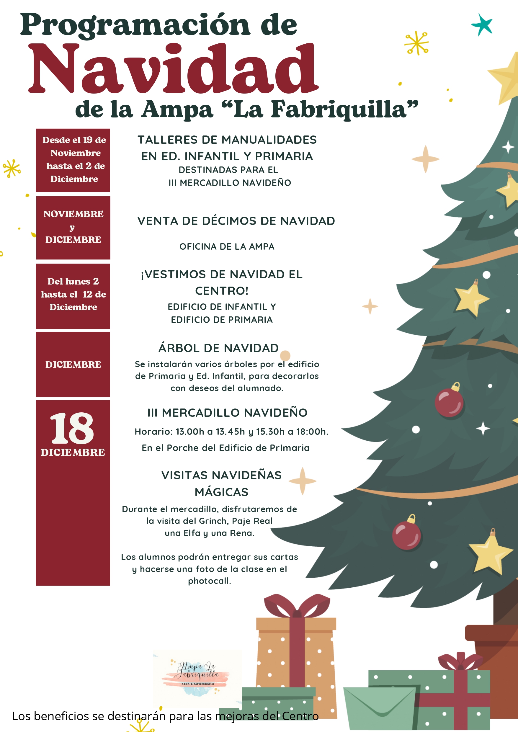 Un año más nuestro centro se viste de navidad. Gracias a las madres/padres de nuestro AMPA, el centro luce precioso. Además el alumnado puede colaborar de la elaboración de los productos para el mercadillo navideño. Damos las gracias a todas esas madres/padres que están organizando los talleres con nuestros grupos de alumnos/a y han adornado los espacios comunes.