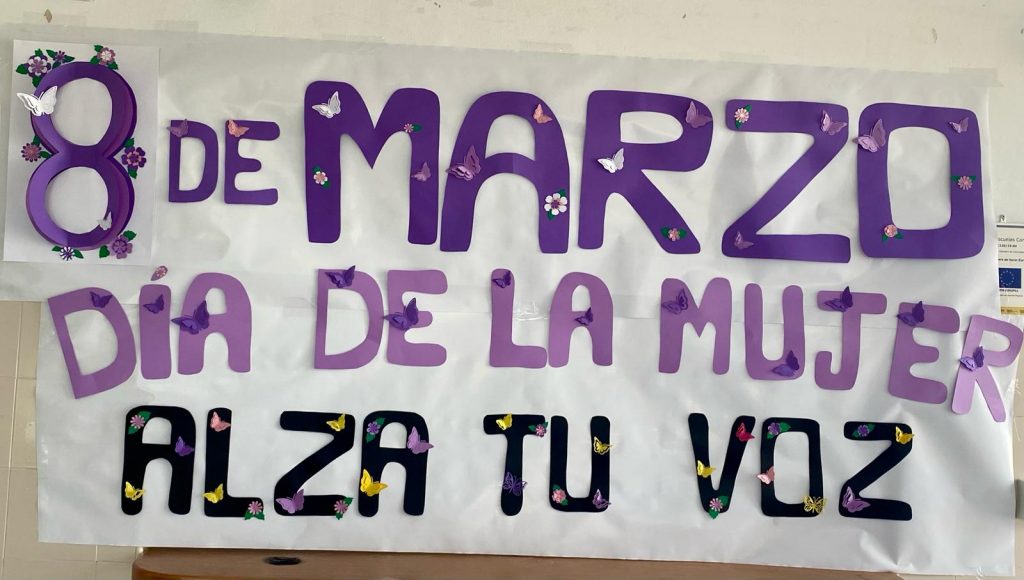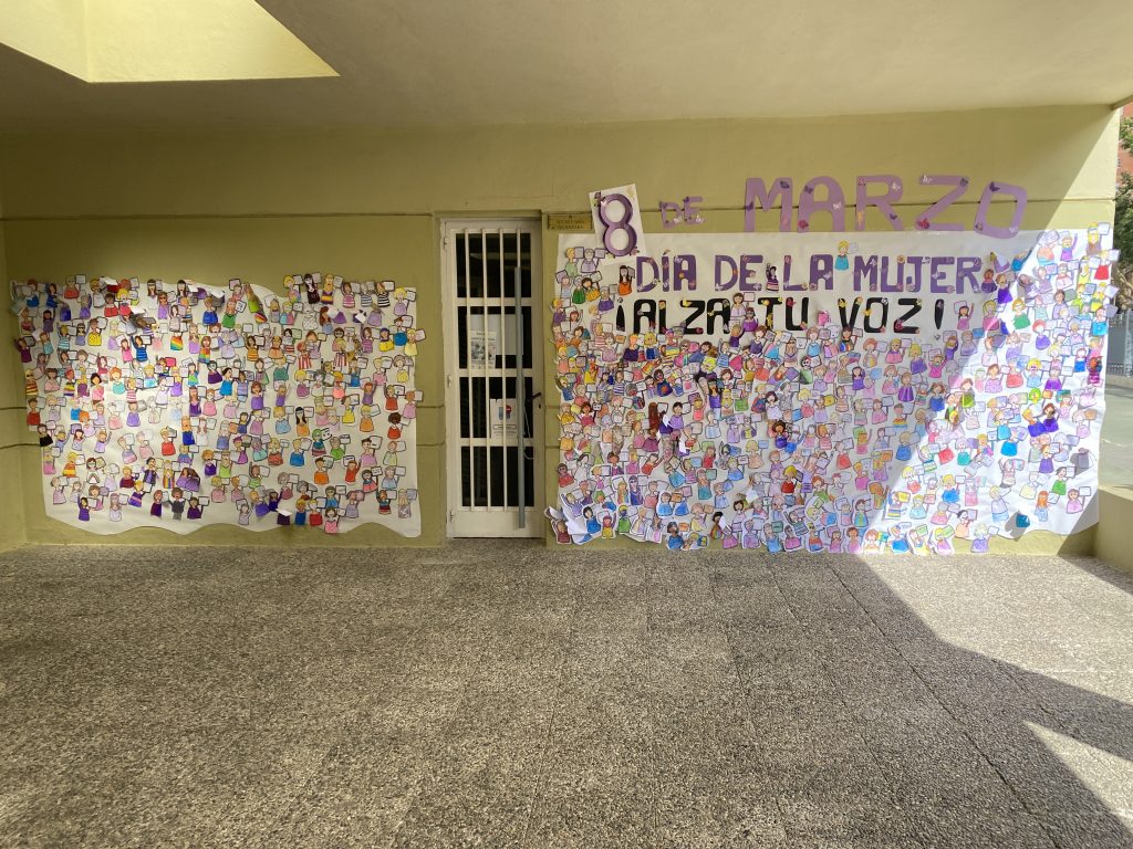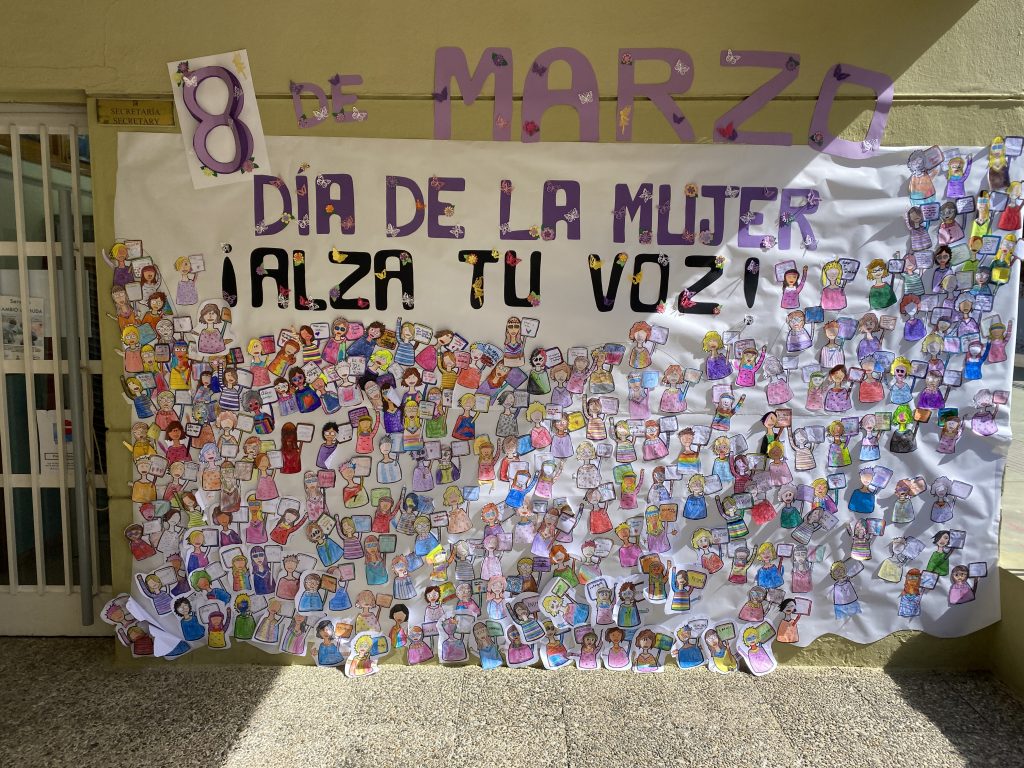 Hoy viernes 8 de marzo hemos celebrado el día internacional de la mujer trabajadora. Nuestro alumnado ha colaborando en la elaboración de un gran mural reivindicativo a modo de gran y colorida manifestación. Damos las gracias a las madres que tan generosamente han elaborado todo el encabezado del mural.